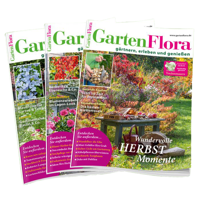 Saisonale Gartentipps, Ratschläge für Beet- und Balkonbepflanzung sowie -gestaltung, pfiffige Anleitungen zum Selbermachen, zahlreiche Pflanzenporträts – das und mehr bietet die GartenFlora Print wie Online.